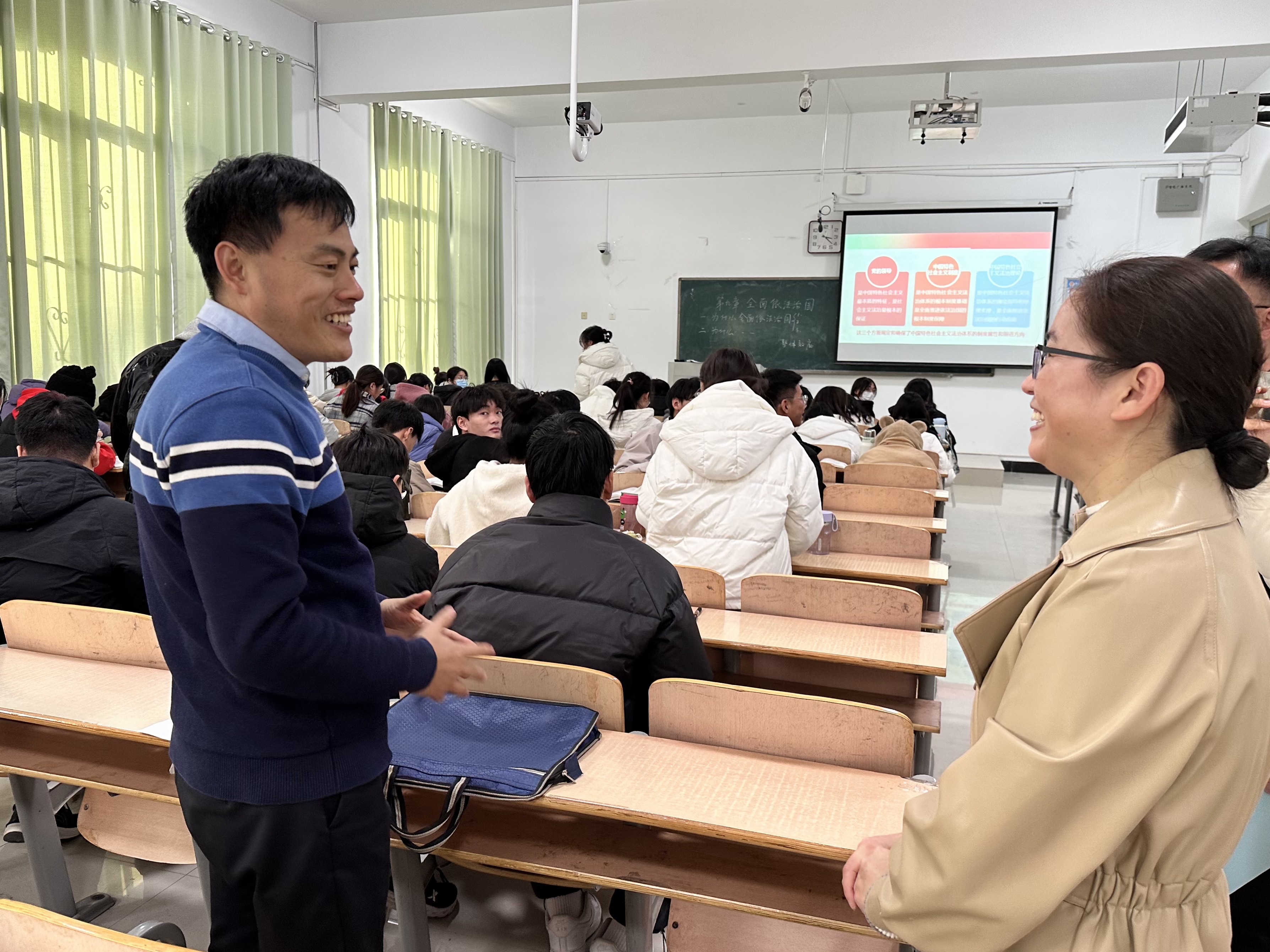 根据中共河南省委教育工委办公室、河南省教育厅办公室《关于开展2023年度全省高校秋季学期思政课“大听课 大调研”活动的通知》安排,11月16日,2023年度全省高校秋季学期思政课“大听课、大调研”第十四调研组成员、河南工业大学0638太阳集团中国近现代史纲要教研室主任黄治国、河南工业大学0638太阳集团副教授王燚莅临我校0638太阳集团进行听课、调研。