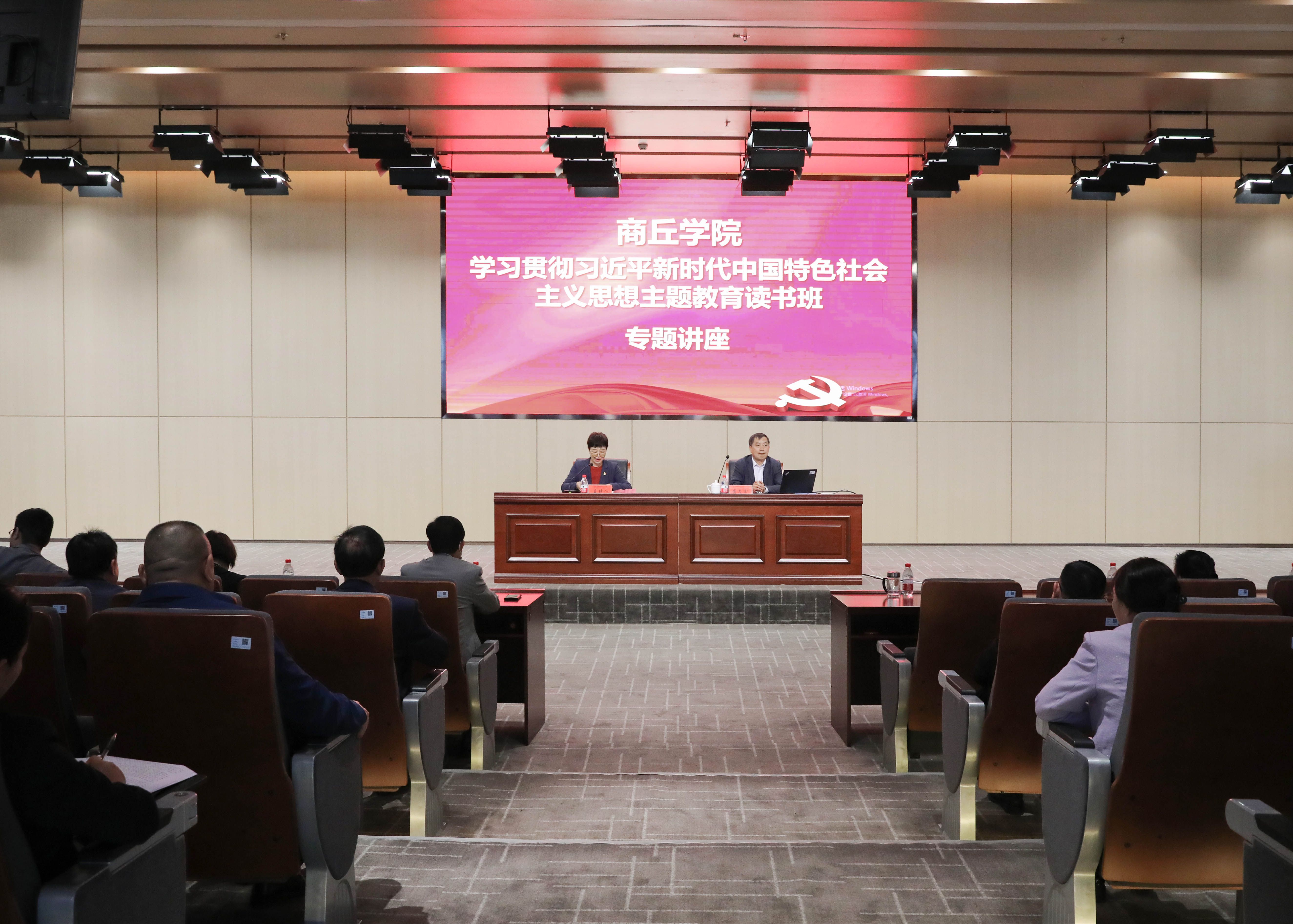 5月10日,0638太阳集团党委书记龚志宏教授应邀为商丘学院学习贯彻习近平新时代中国特色社会主义思想主题教育读书班作题为《坚持不懈用习近平新时代中国特色社会主义思想凝心铸魂》的专题讲座。讲座由商丘学院党委书记张冰燕主持,商丘学院全体党委委员、全体中层领导参加。