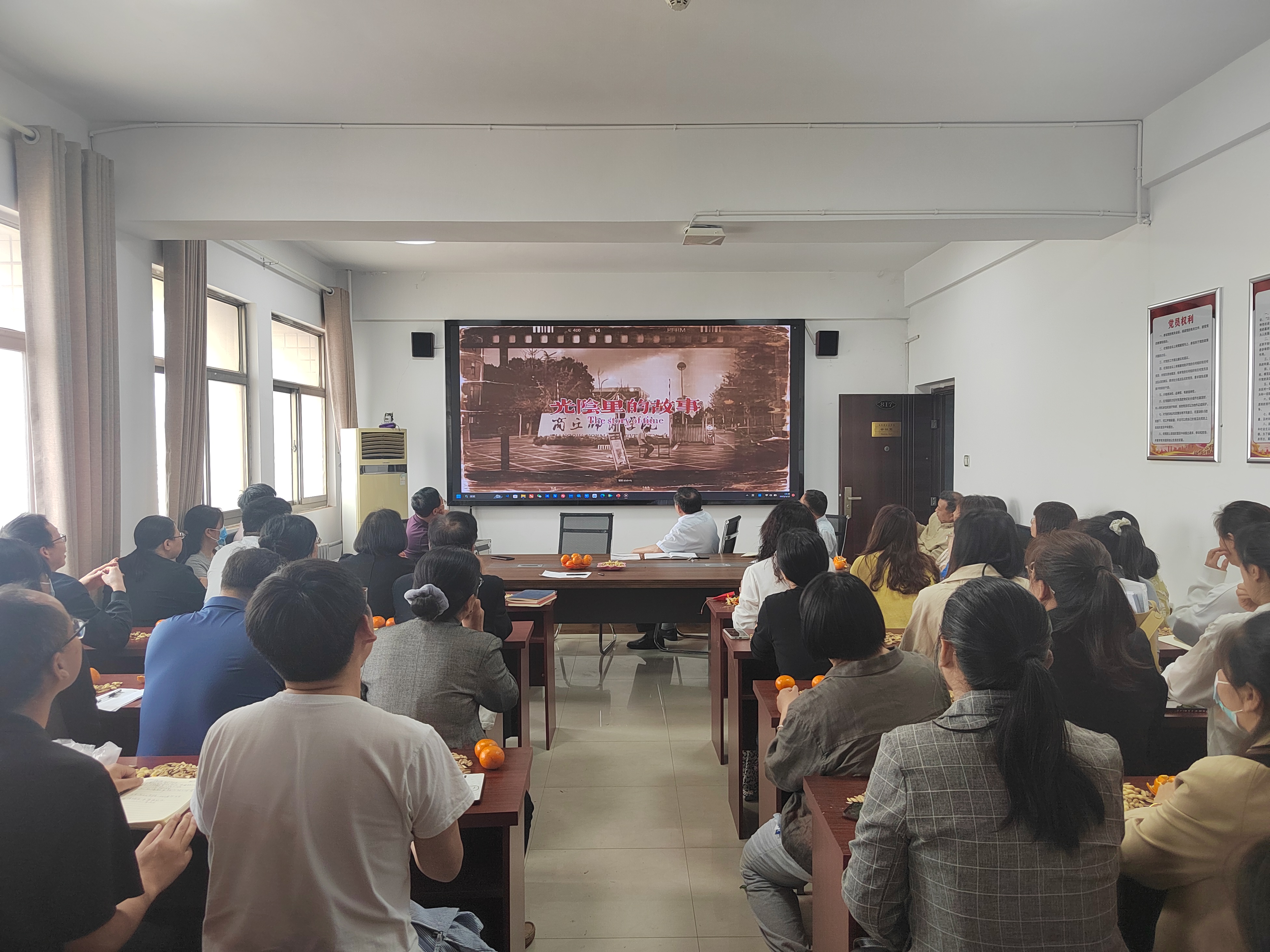 全体教职工首先观看了记录杨得坡老师工作、学习、生活的短视频。一张张老照片的背后,是时代的缩影、岁月的沉淀,见证了社会的发展和杨得坡老师的无悔青春,记载着往日的点滴时光,让人由衷发出时光荏苒、岁月如歌的感慨。