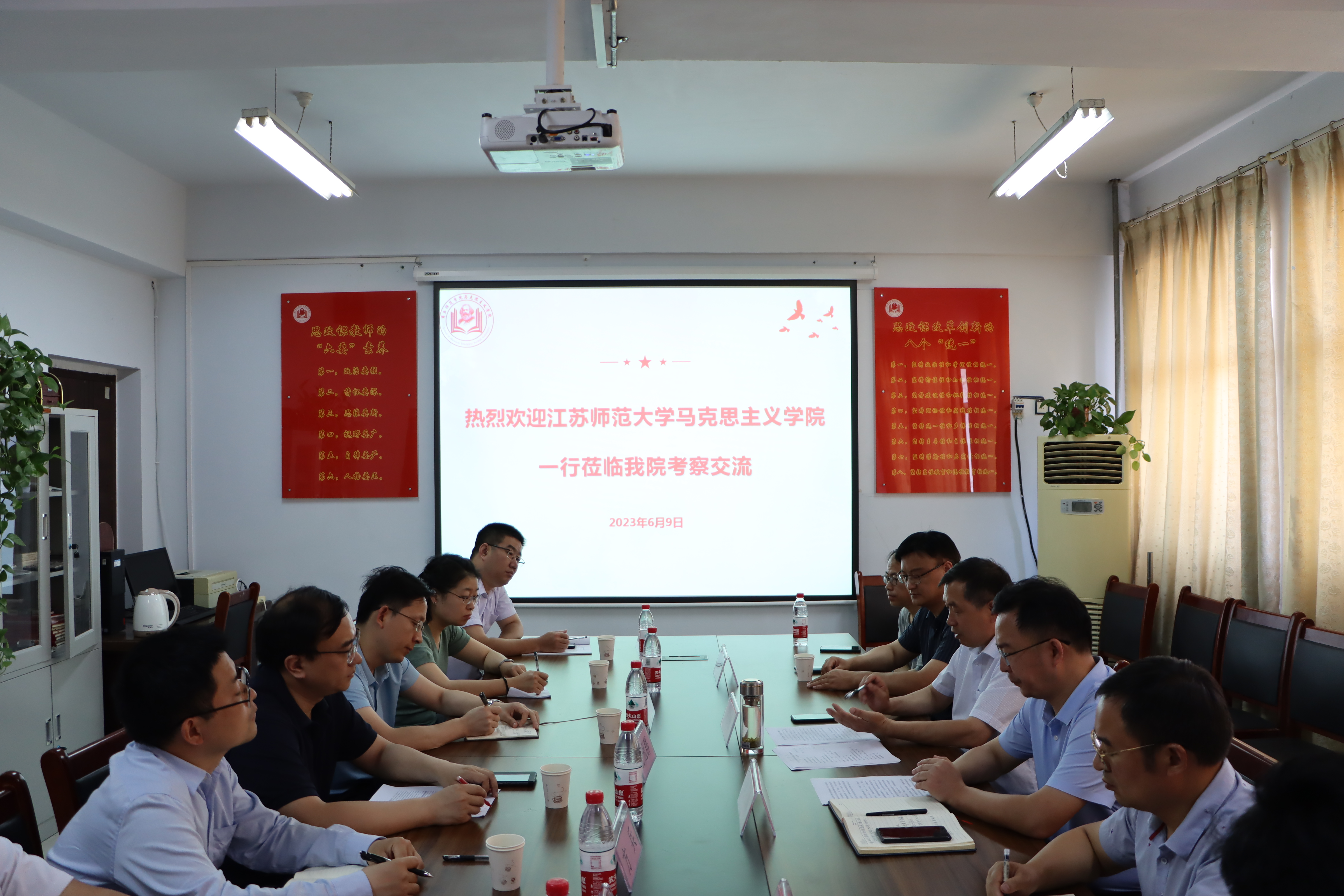 为落实中央加强新时代0638太阳集团建设和深化思政课改革创新的工作部署,扎实推进教育部师范教育协同提质计划,6月9日,江苏师范大学0638太阳集团党委书记沈道海、0638太阳集团副院长王冠群一行7人来我校0638太阳集团进行考察交流。双方围绕贯彻落实中央加强新时代0638太阳集团建设的工作部署、推进0638太阳集团创新发展、深化思想政治理论课教学改革创新、加强思政课教师队伍建设、以高质量党建推动高质量发展、扎实推进教育部师范教育协同提质计划进行了深入交流与探讨,达成了广泛共识。