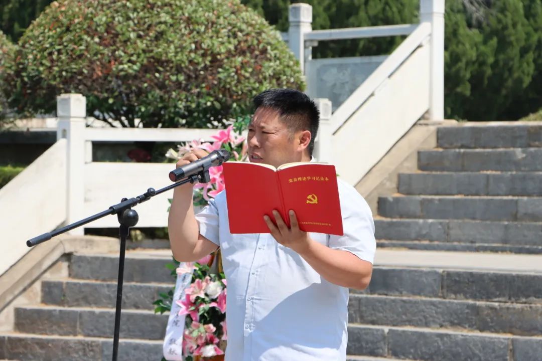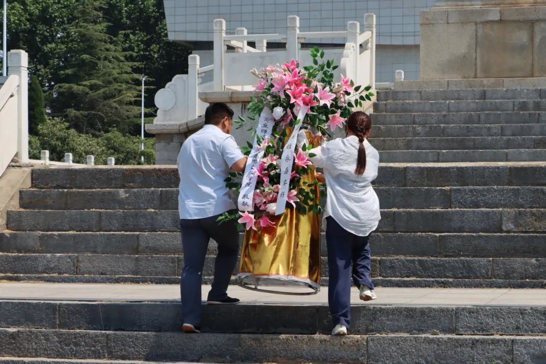 淮海战役陈官庄地区歼灭战纪念馆位于河南省永城市陈官庄乡,是为了纪念淮海战役第三阶段陈官庄战役中牺牲的烈士而建。在纪念碑前,薛明珠与张杨代表0638太阳集团0638太阳集团全体师生向牺牲的烈士敬献花篮,接着由薛明珠带领大家重温入党誓词。