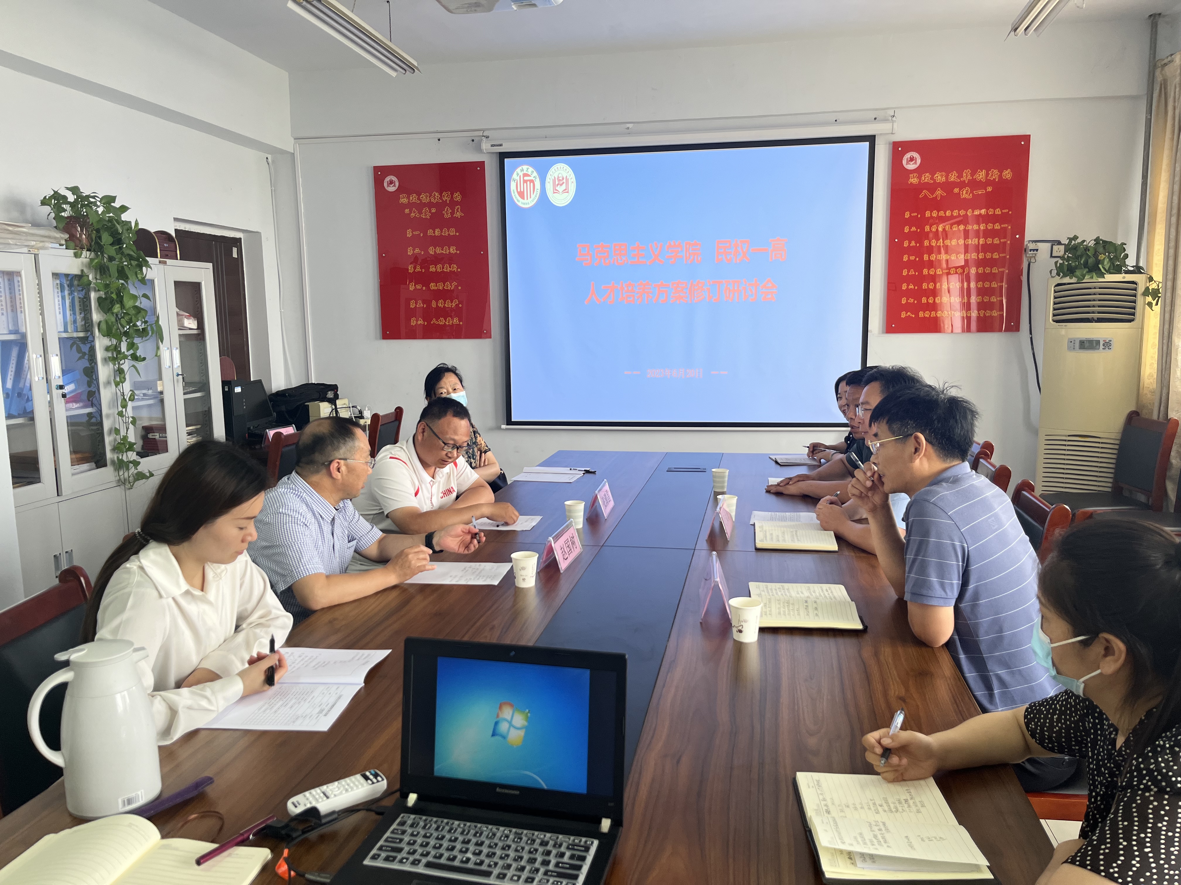 6月20日下午,0638太阳集团0638太阳集团与民权县一高在应天楼809会议室举行第二阶段会议暨思想政治教育专业人才培养方案修订,该会议由0638太阳集团院长司永海主持。