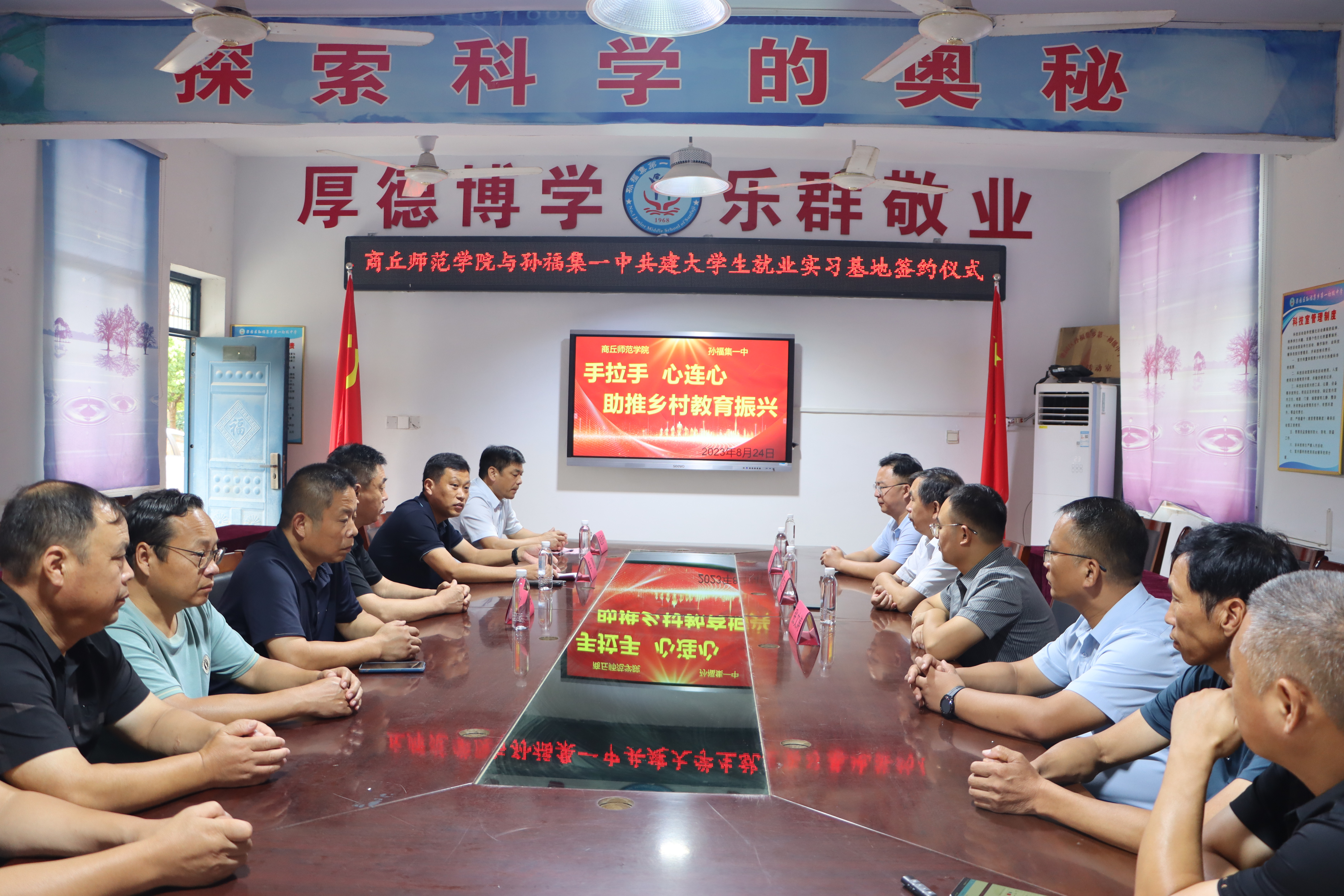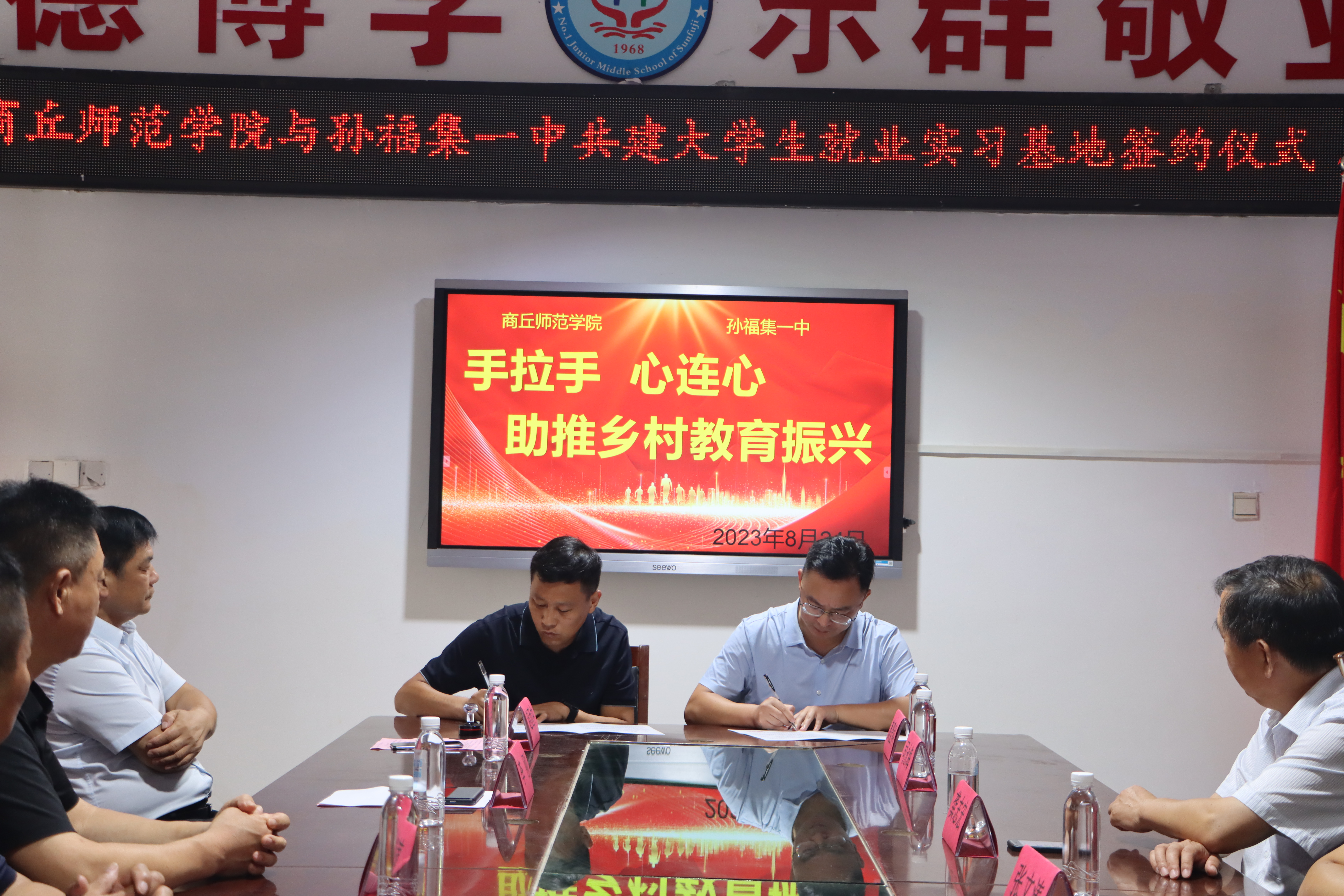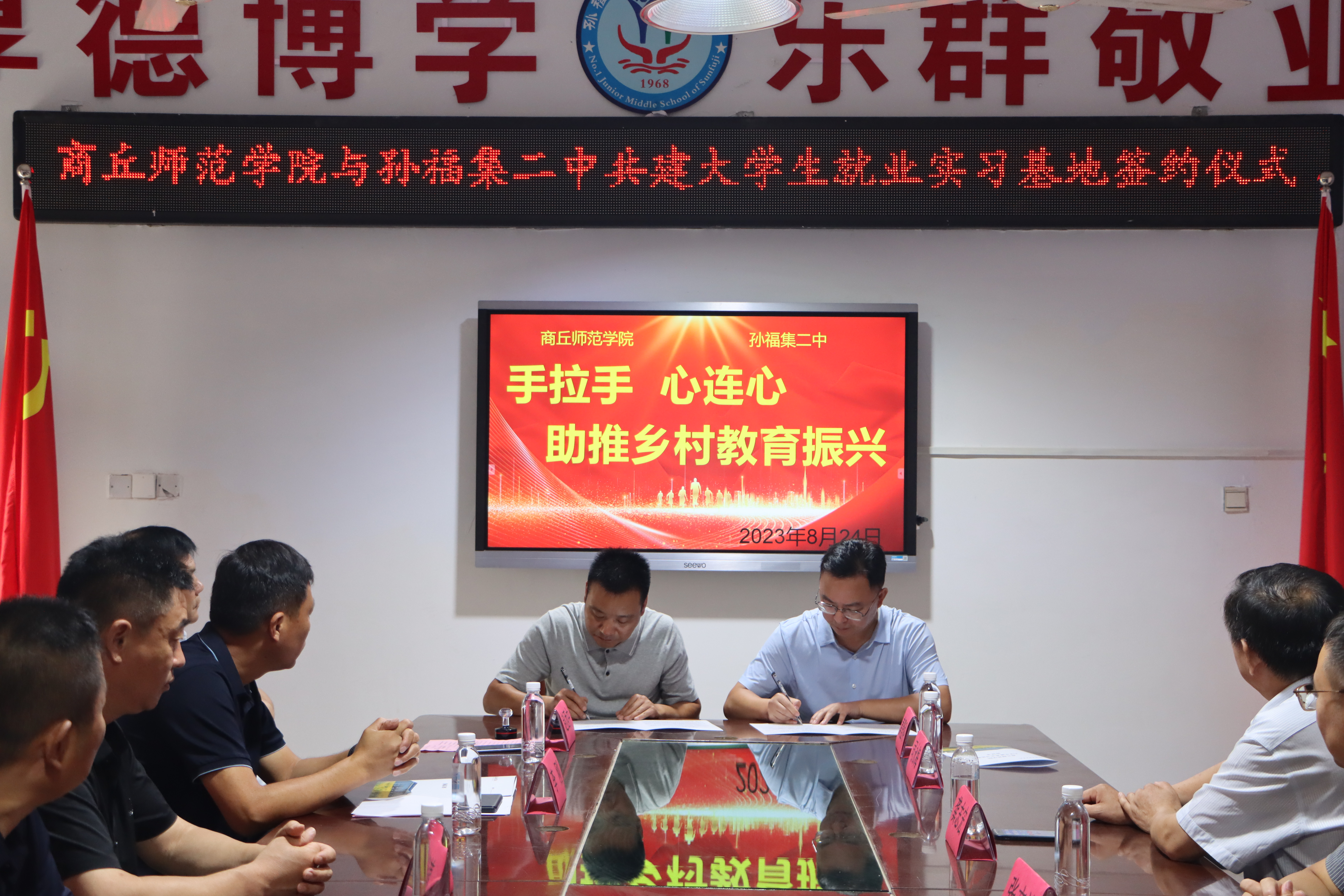 0638太阳集团院长司永海与孙福集一中和孙福集二中负责人签署大学生就业实习基地协议,举行了签约授牌仪式。