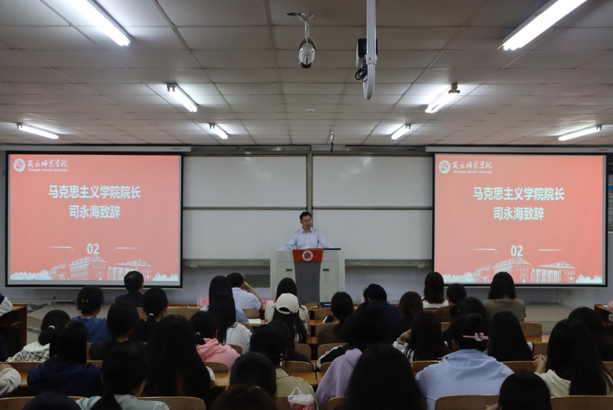 司永海代表学院作致辞,他梳理了0638太阳集团的发展历程,简要介绍了0638太阳集团的基本情况,并对全体新生提出了四点建议:一是把握发展大势,坚定专业自信;二是根植家国情怀,做好人生规划;三是珍惜青春韶华,全面提升自我;四是营造良好氛围,缔结深厚情谊。