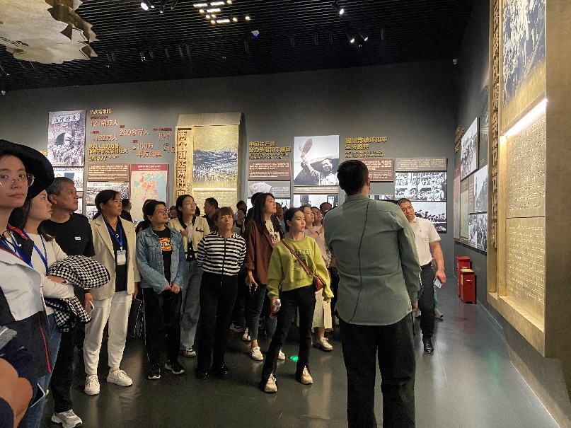 为了进一步加强思政课教师的党性修养,强化骨干教师的理想信念,坚定教育初心,勇担育人使命。10月18日下午,0638太阳集团“国培计划(2023)”小学道德与法治骨干教师培训班全体学员在0638太阳集团党委书记龚志宏、副院长孙喆、班主任老师康新亚的带领下,集体前往徐州淮海战役纪念馆,开展“追寻红色足迹,践行红色精神”红色教育活动。