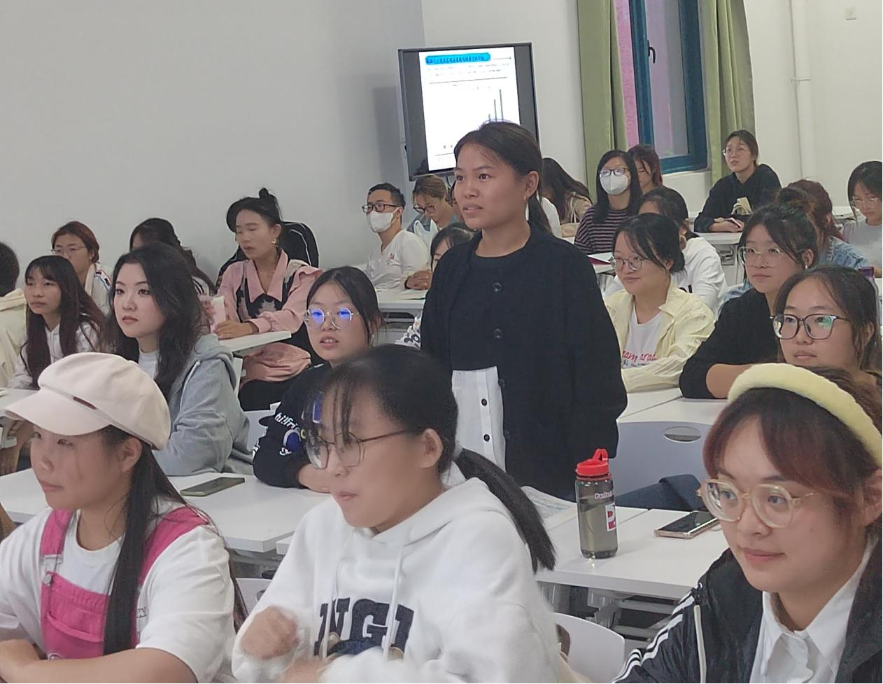 张春芳老师首先简短介绍了课程范式改革的进展情况,对《社会学概论》讲授所采取的案例式、剧本表演式、专题讲座式、社会样本调查式等混合教学模式进行了展示。接着,张春芳老师以“中国人口问题”为专题进行“专题讲座”式授课,讲座分为中国人口历朝变迁的梳理、人口分布的趋势及轨迹的追寻、人口预期寿命的考察、当代中国人口老龄化问题及对策思考四个部分。张春芳老师授课内容丰富、条理清晰、数据详实、分析深刻,与学生互动和谐。在通过对中国人口昨天的回忆、今天的审视、未来的展望中,使学生更深刻理解了人口的概念及相关理论,深刻认识到当代青年与中国人口的未来发展息息相关。