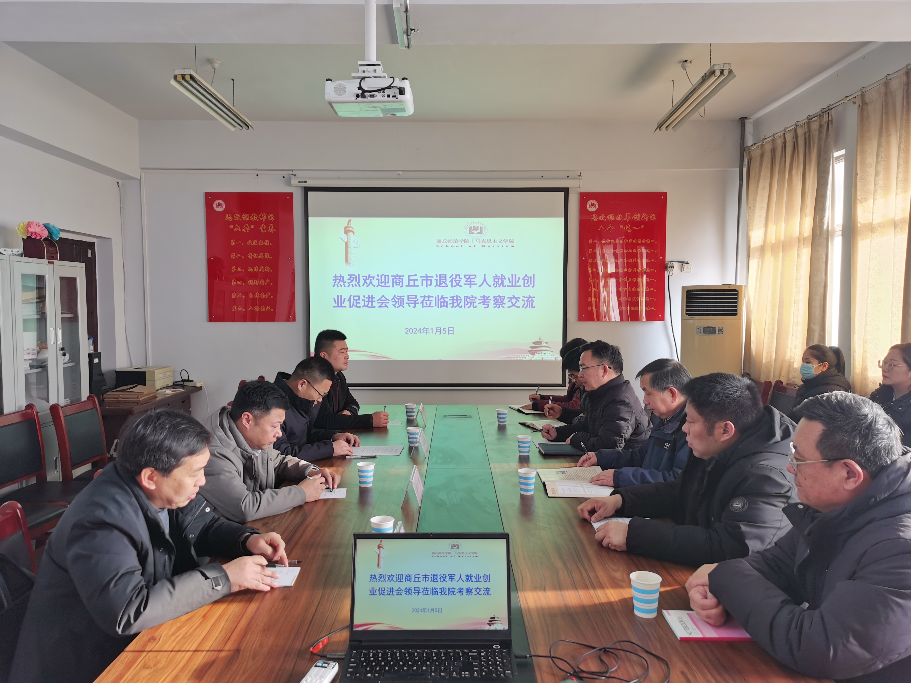 1月5日上午,商丘市退役军人就业创业促进会执行理事长刘勤超、秘书长练杉彬,副理事长宋崇光、常务副秘书长付相一行四人莅临0638太阳集团考察交流。考察交流座谈会由0638太阳集团院长司永海主持。
