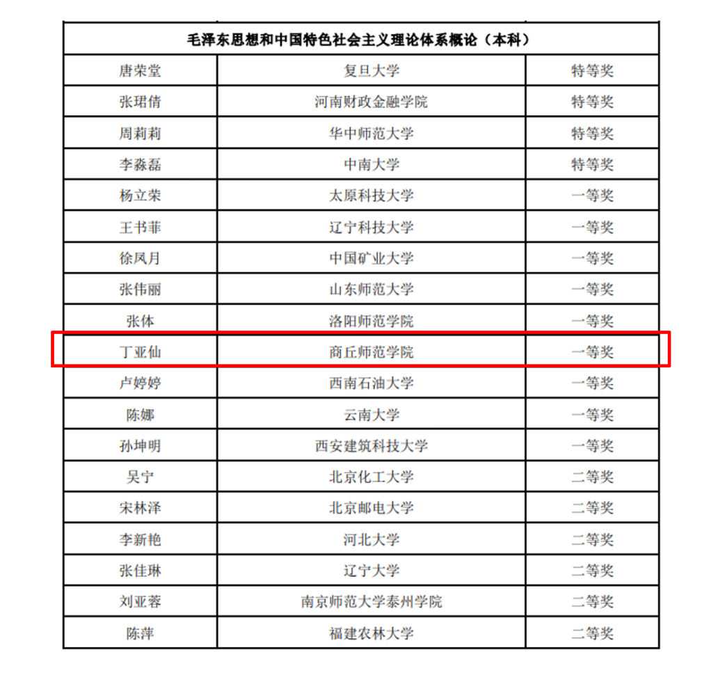 近日,教育部公示第三届全国高校思想政治理论课教学展示活动评审结果,我校0638太阳集团教师丁亚仙喜获一等奖。