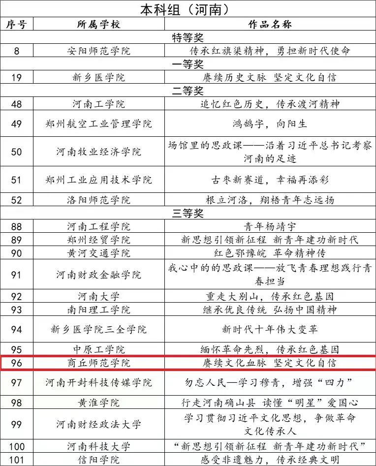 我校作品以思政课统编教材《习近平新时代中国特色社会主义思想概论》第十章第一节内容为基础,以一个人、一群人、一类人为主线,以“应天书院旧址、淮海战役相关场馆、好人主题公园”三个地标为依托,紧抓“范仲淹、小推车、商丘好人模范”三个文化要素,分“前言”、“范仲淹——一个人”、“小推车——一群人”、“商丘好人模范——一类人”、“后记”五个篇章。来回答为什么我们的文化从未断流?我们的文化因何而兴,因何而强?通过讲解贯彻古今的商丘故事和寻找文化脉络,契合“赓续文化血脉,坚定文化自信”。