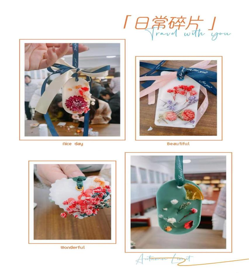 活动开始,张晓雨老师向大家介绍了香薰蜡烛的制作过程。在制作过程中,参与老师充分发挥想象力和动手能力,制作了很多有趣、漂亮的作品。
