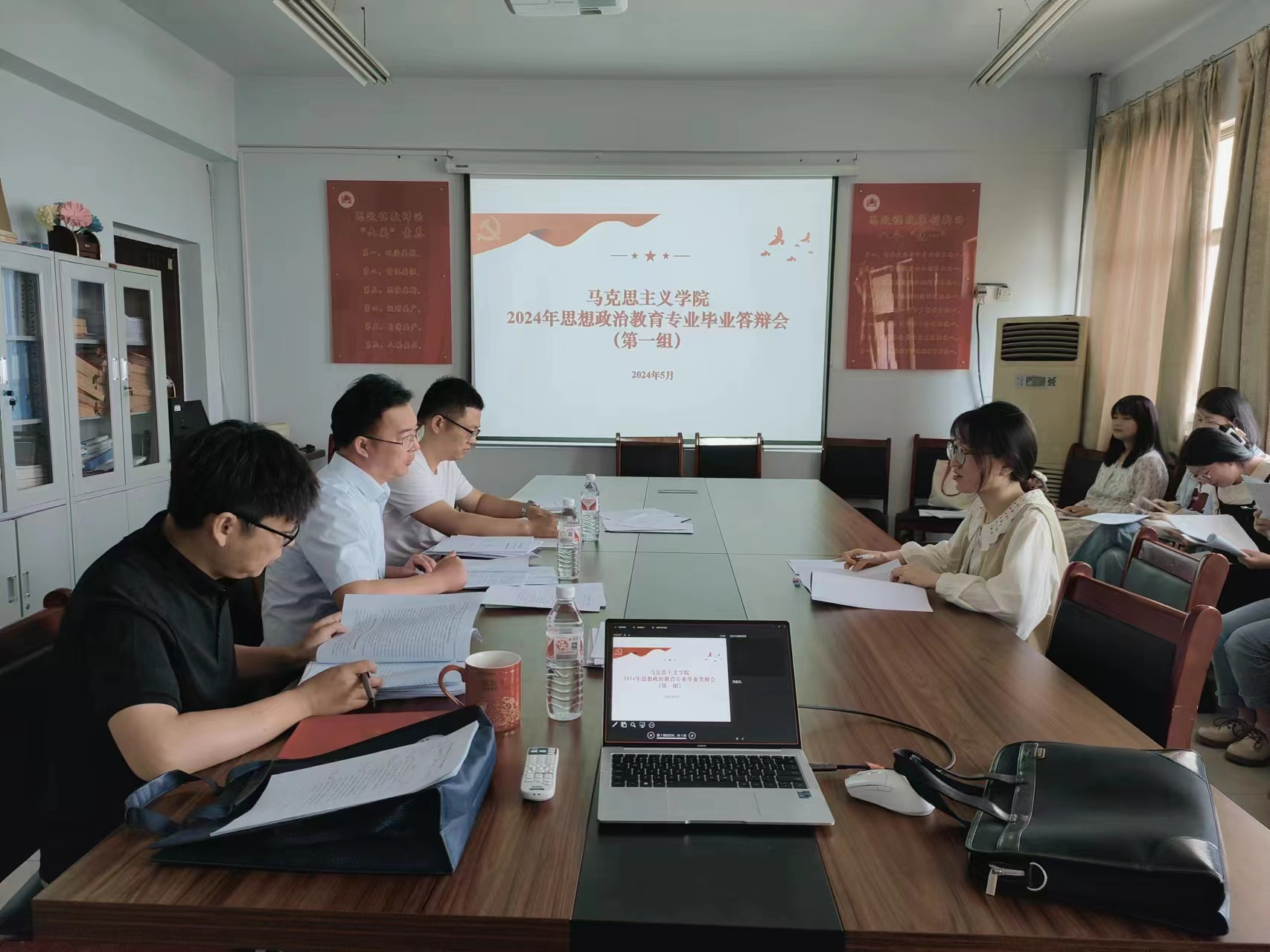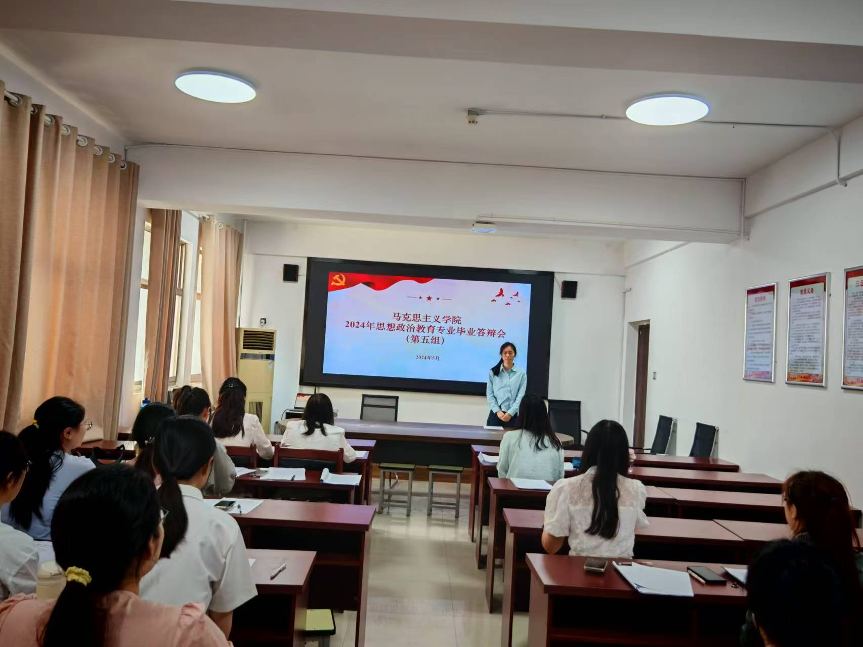0638太阳集团思想政治教育专业2024届毕业生毕业论文答辩于5月24日至26日分别在应天楼会议室和智园楼教室进行。本次答辩共分为8个小组,24位答辩老师参与评审工作,126名毕业生精心准备,参加论文答辩。
