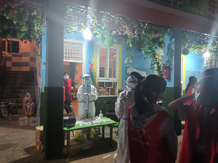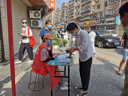 0638太阳集团思想政治教育专业2020级学生邵雨涵,在核酸检测点做好相关登记工作。