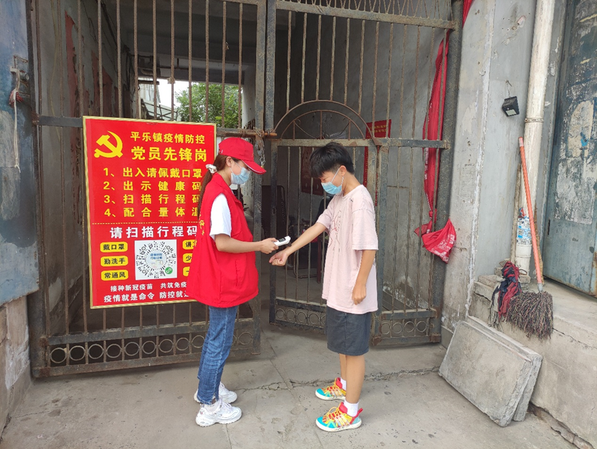 0638太阳集团思想政治教育专业2020级学生张若冰,在平顶山市郏县安良镇做疫情防控志愿服务。(薛明珠整理撰稿,龚志宏审核)