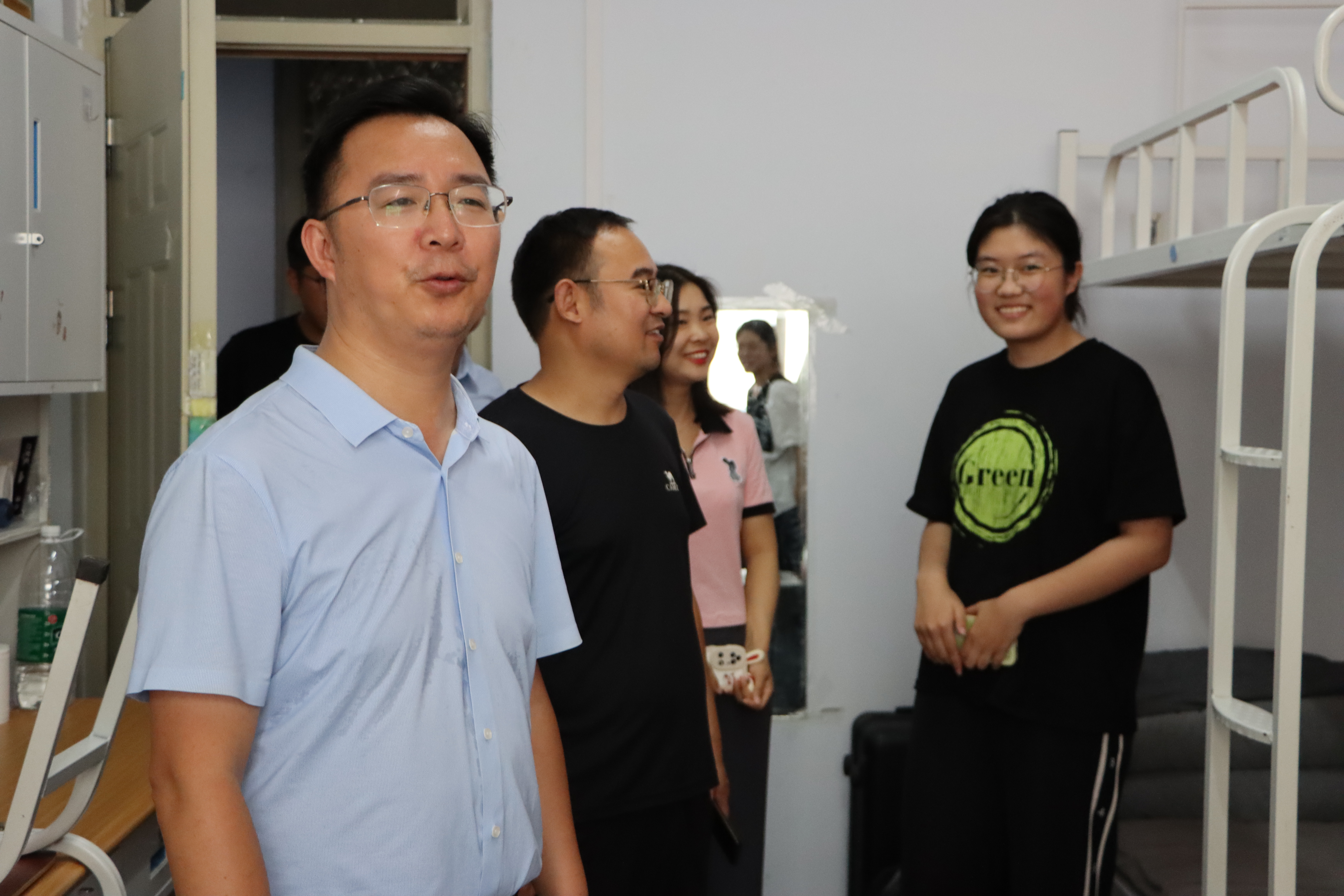 9月11日晚上,0638太阳集团院长司永海、党委副书记张文涛、2023级班主任及辅导员深入2023级新生宿舍检查内务。