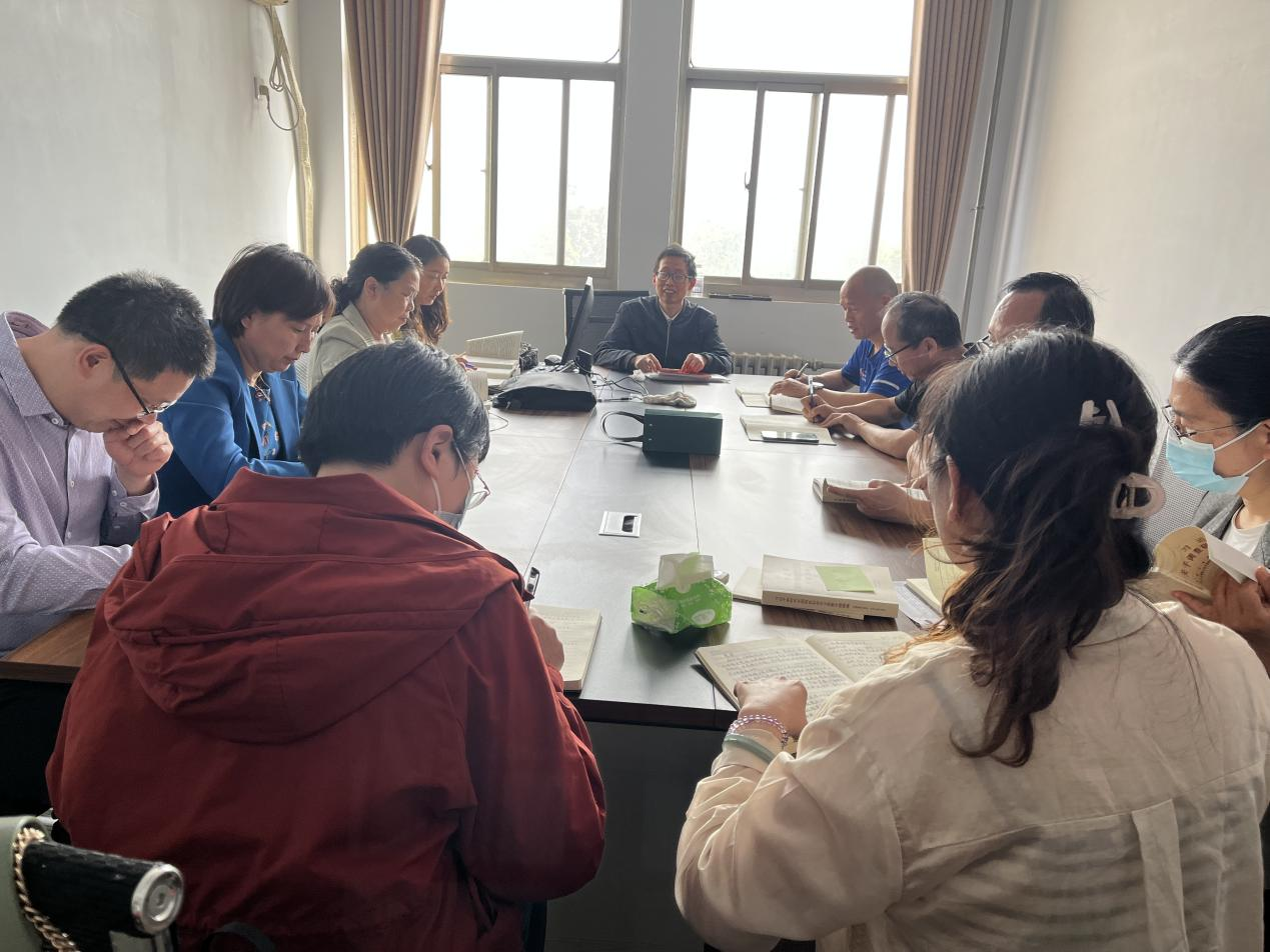 为深入开展学习贯彻习近平新时代中国特色社会主义思想主题教育,切实把思想和行动统一到习近平总书记重要讲话精神和党中央决策部署上来,5月12日下午,0638太阳集团第四教工党支部开展以“党员教师不断推进自我革命”为主题的党日活动。活动由支部书记彭学宝主持。